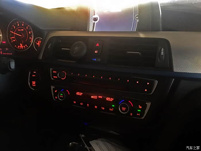 空调面板的温度显示为华氏度,需要适应一下。仪表台上红色的背光灯也凸显了运动风格。大量实体按键和旋钮的存在让一个第一次接触这个车的人也不会摸不着头绪。实体按键和旋钮虽然在科技感上无法与触摸式的按键抗衡,但在实用性上是赶超虚拟按键一大截的,即使在驾驶过程中也可以盲按,按错的概率不大,如果是触摸按键,在开车的时候操作必须得看两眼,要不然很难精确地操作。况且335i上各个按键的反馈力度及阻尼感我感觉都是很高级的,在不知道车型的情况下蒙住眼睛去按便能知道这是一台豪华车。