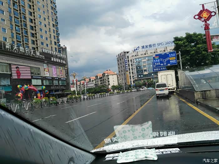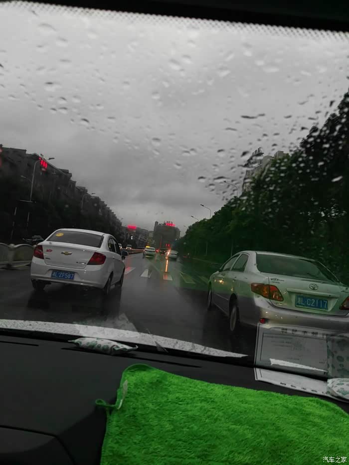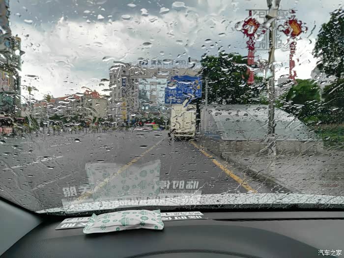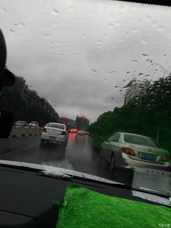开始下了,我老婆在开车就没有照了 ,我还要给她看路了,那雨下的和洗车房的水一样大