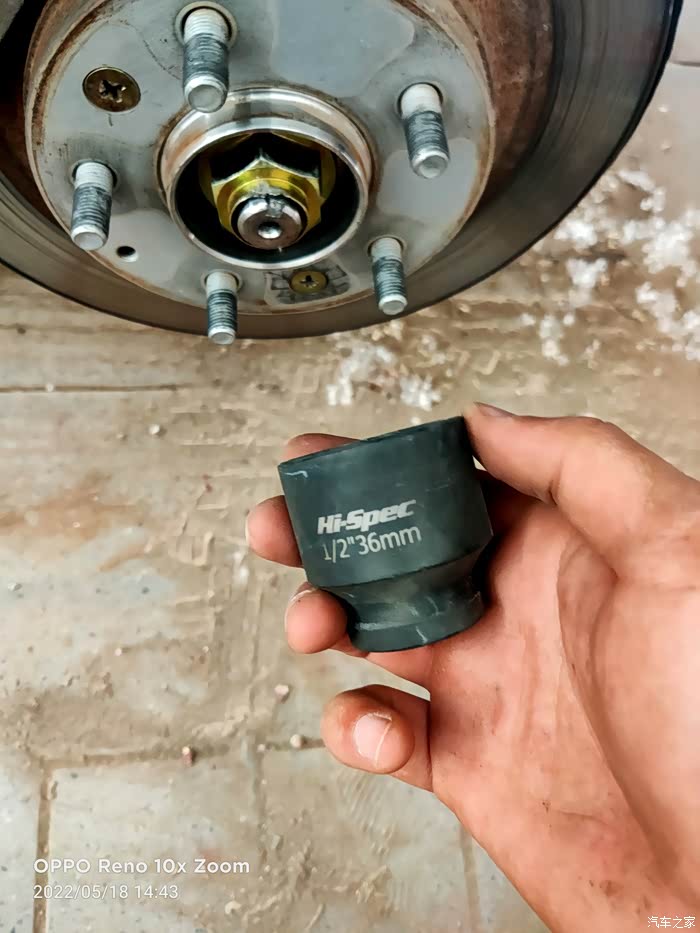 这里要说一下 这个螺丝母不是用32的套筒 之前百度说有用32号套筒 结果买的那一套扳手里最大的才32 ,这个螺丝母是用36的套筒 有自己想动手更换的车友直接买36的套筒,