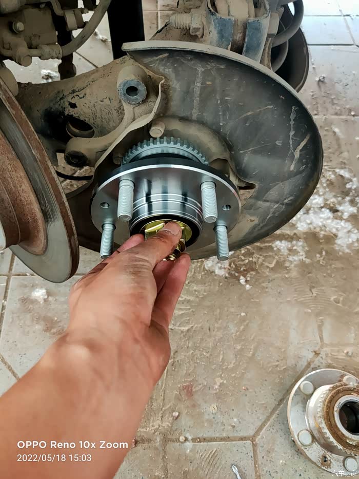 旧轴承锈迹还不是太多 因为换了还没有一年呢 轻轻保持平衡 一拿就下来 不用多大力