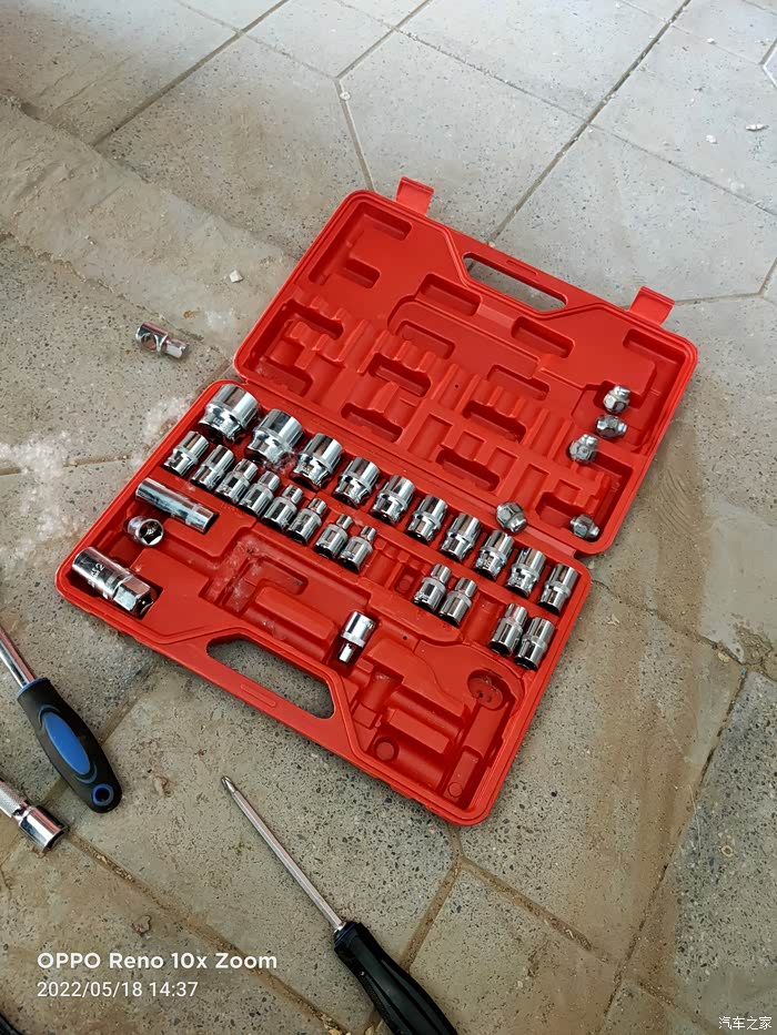 小五菱将近14万公里了 原车后轮轴承之前坏了 换过了一个 可惜不耐用 KOYO的 估计买到假货了 今天自己更换一下 之前看过一遍修车师傅怎么拆卸的 决定自己动手 满满的成就感😛😛 之前准备好的一套套筒扳手 上图。。