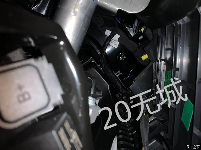 找到驾驶位的膝下视角,拍一张仪表台下方的空间,线束一览无余。