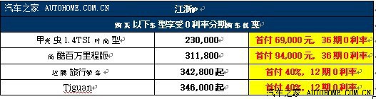 为了使消费者能够提前享受到大众进口汽车带来的高品质产品与服务,大众进口汽车携手大众汽车金融(中国)针对Tiguan和迈腾旅行轿车等车型推出多款金融购车方案,即日起到3月31日,消费者到大众进口汽车授权经销商店购车,即可享受包括低首付、0利率、0月供、2小时快速审批流程等多种金融购车方案,轻松实现购车梦想,提前把爱车开回家。