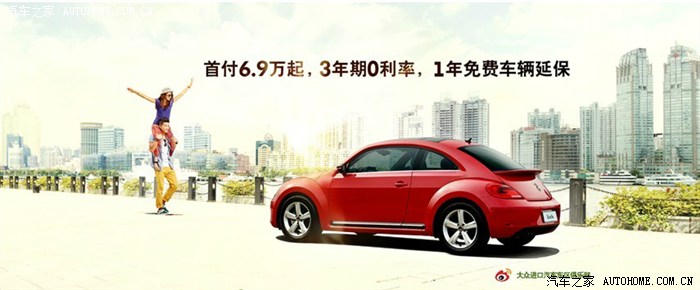 大众汽车甲壳虫,首付6.9万起,3年期0利率,1年车辆免费延保