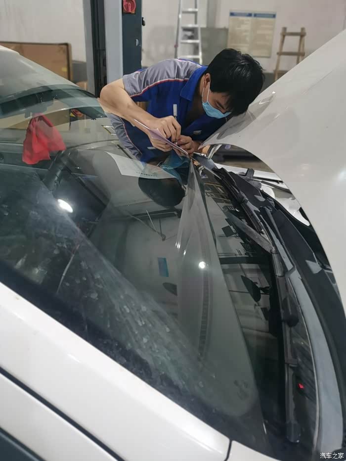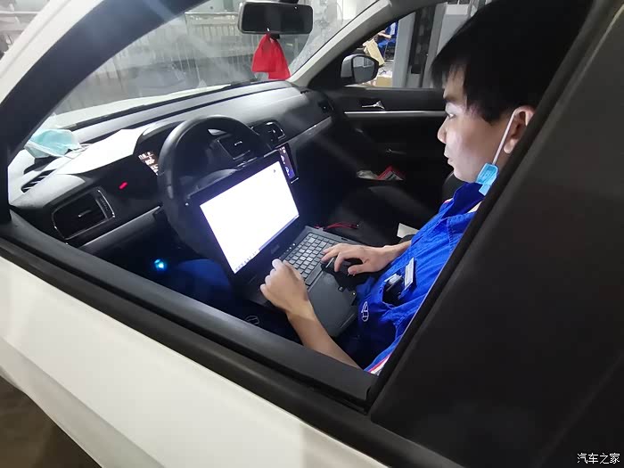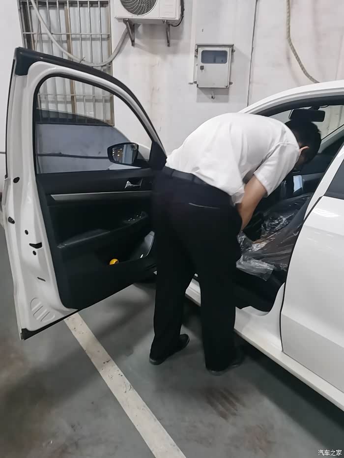 售后顾问区生在接待中,看到我的车过来就帮我开了单并帮我检查一下后雨刮器,但还是不动的,于是用座椅防护胶把座椅盖上,就开到车间里叫师傅检测了。