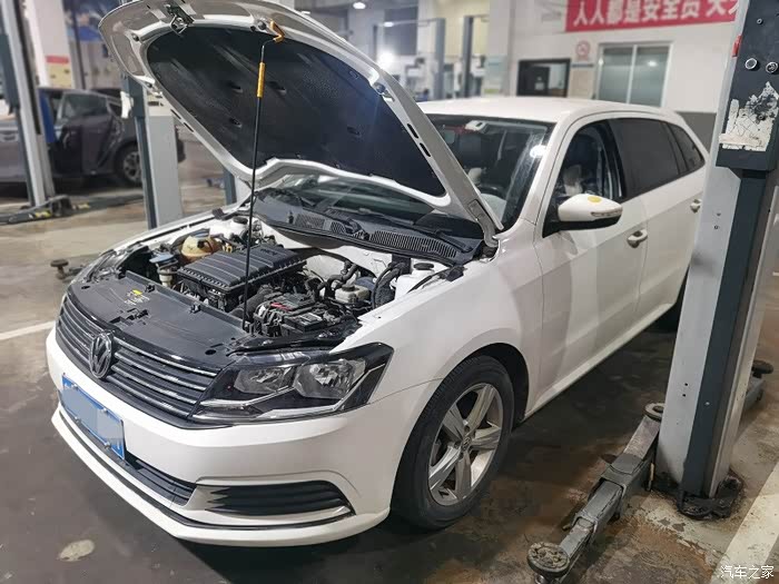 我也跟着车子进了车间,看到车停在维修工位,师傅打开后雨刮测试了一下,并打开发动机舱看了一下情况。