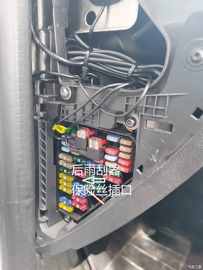 安装保险丝后马上按下后雨刮按扭,后雨刮器终于动起来了。