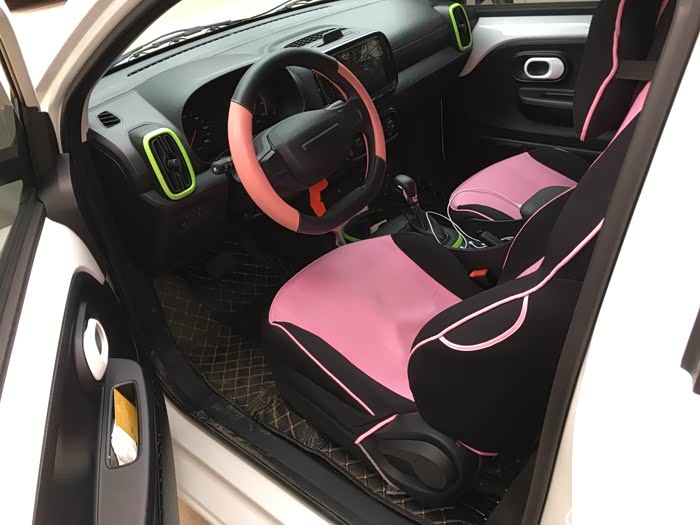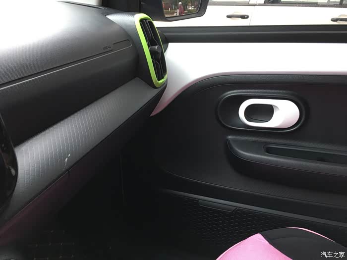 外观我欣赏不来,除了小还是小,媳妇说好看很可爱,内饰我也整不明白为啥纯白色的车身要配个黑绿色的座椅和内饰???是不是女生都这么看,这样还是觉得可爱?开起来的感受还是不错,我跑过回高速,方向盘不飘,指向准,耗电也正常走不虚,我从曲靖到罗平去接她,139公里,耗电在140左右,里程数我觉得还是准的。还有科莱威主副驾都带安全气囊,开关门的时候玻璃还会自动降下来,是为了提前透气吗,我也不明白。整体还行,媳妇喜欢,现在开了可顺了,一车粉色我上车都有点不好意了。