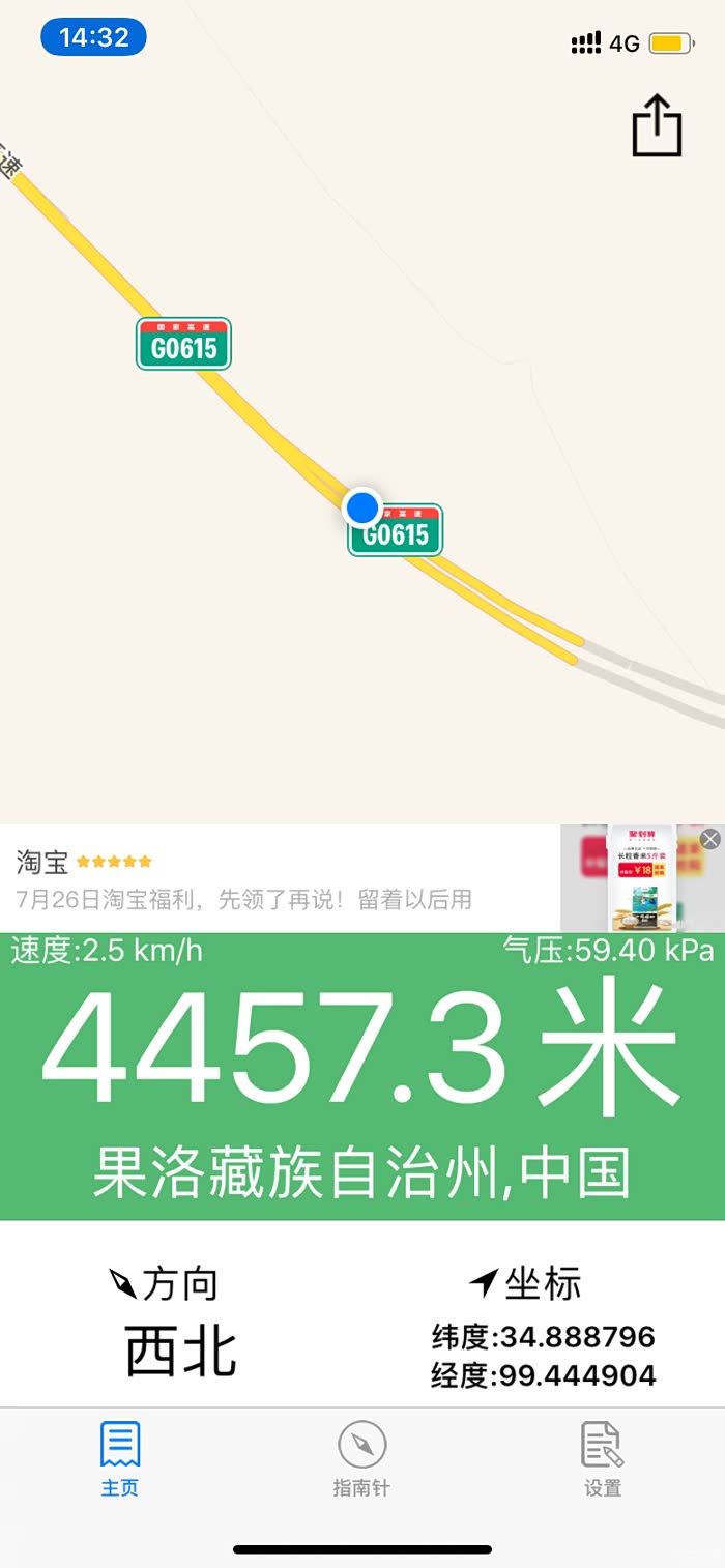 不知道是车机不准还是手机软件不准!但总归海拔已经是4300?了!