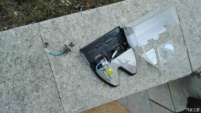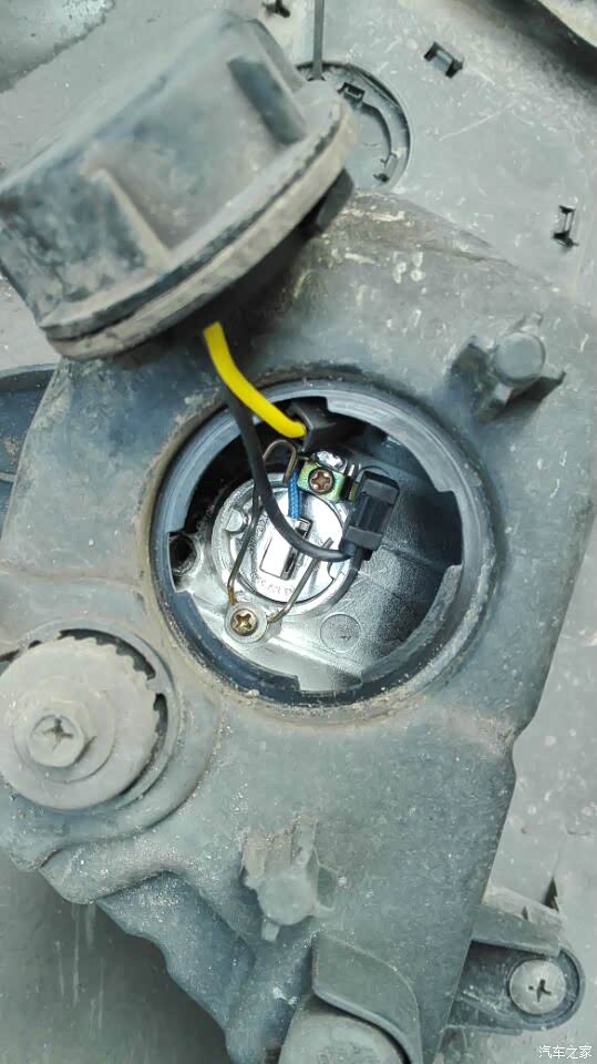 打开这个防水帽,看到两个小螺丝和卡簧了吗?拆掉有黑色插头的那一个小螺丝,另一个松开就可以了,然后拿出灯泡来。