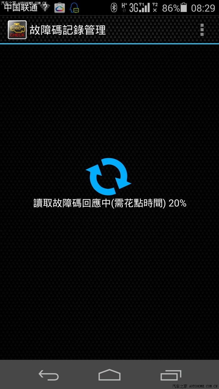 手机打开蓝牙功能,先和OBD II 配对连接后,再查询故障码,正在查询中。。。。