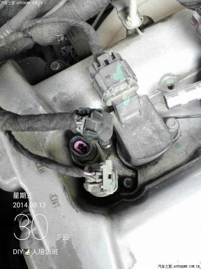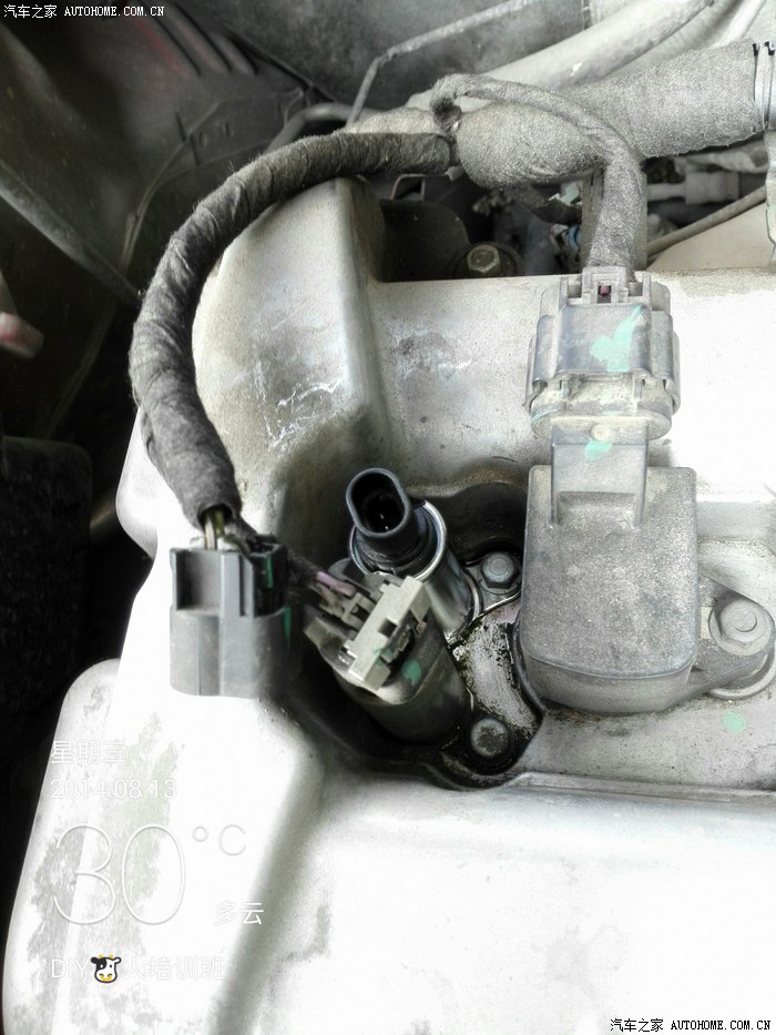 在火花塞的旁边,有这2个按钮,外面的这个是进气电磁阀,里面那个是排气电磁阀,这次我要换的是里面的这个