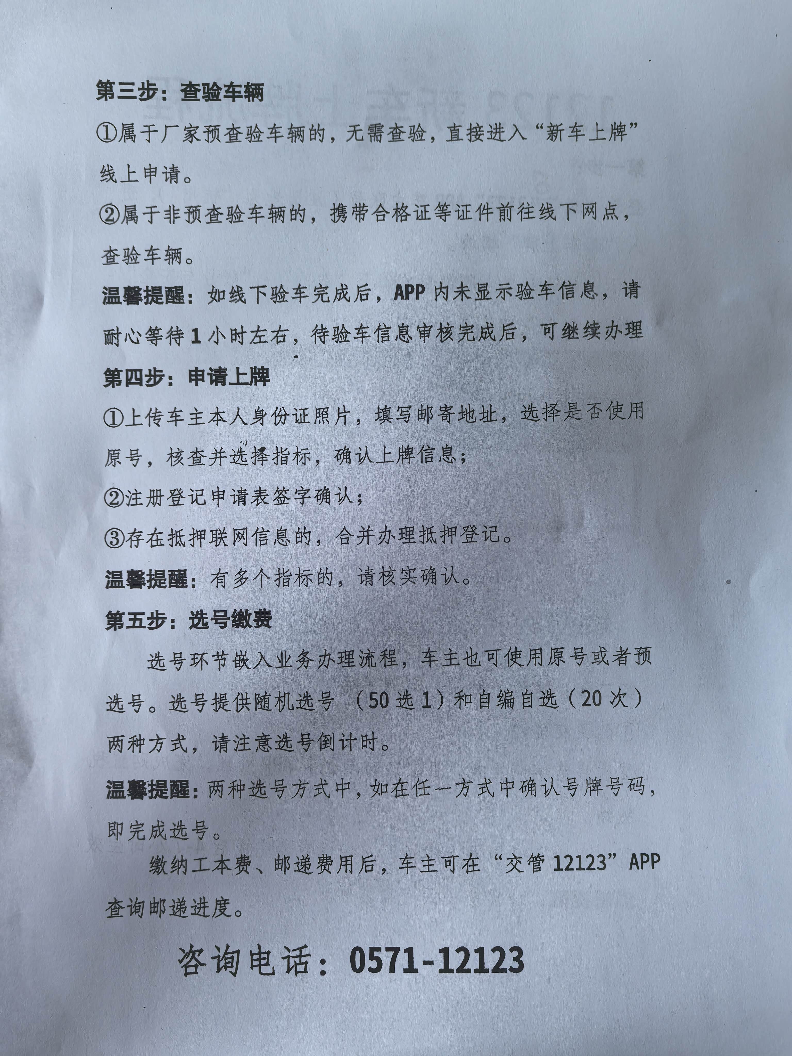 杭州比较赞的是全面实现云申领,只要线下检查好之后,就可以回去办理号牌。当然比如问界系列车都是预检好的,都不用跑去车管所检验,直接可以线上申领,希望未来新车都能这样,简化流程,这是趋势!!!