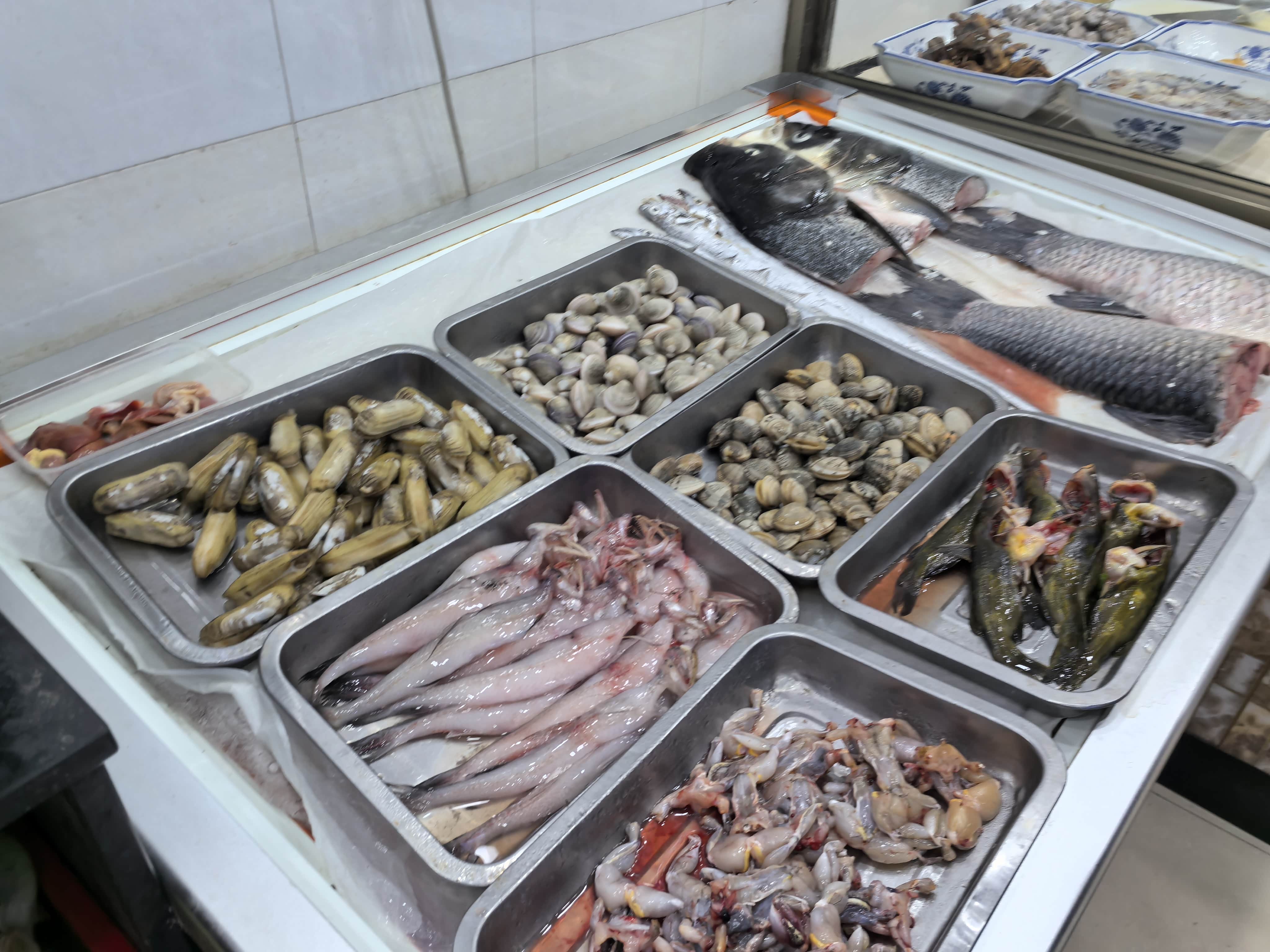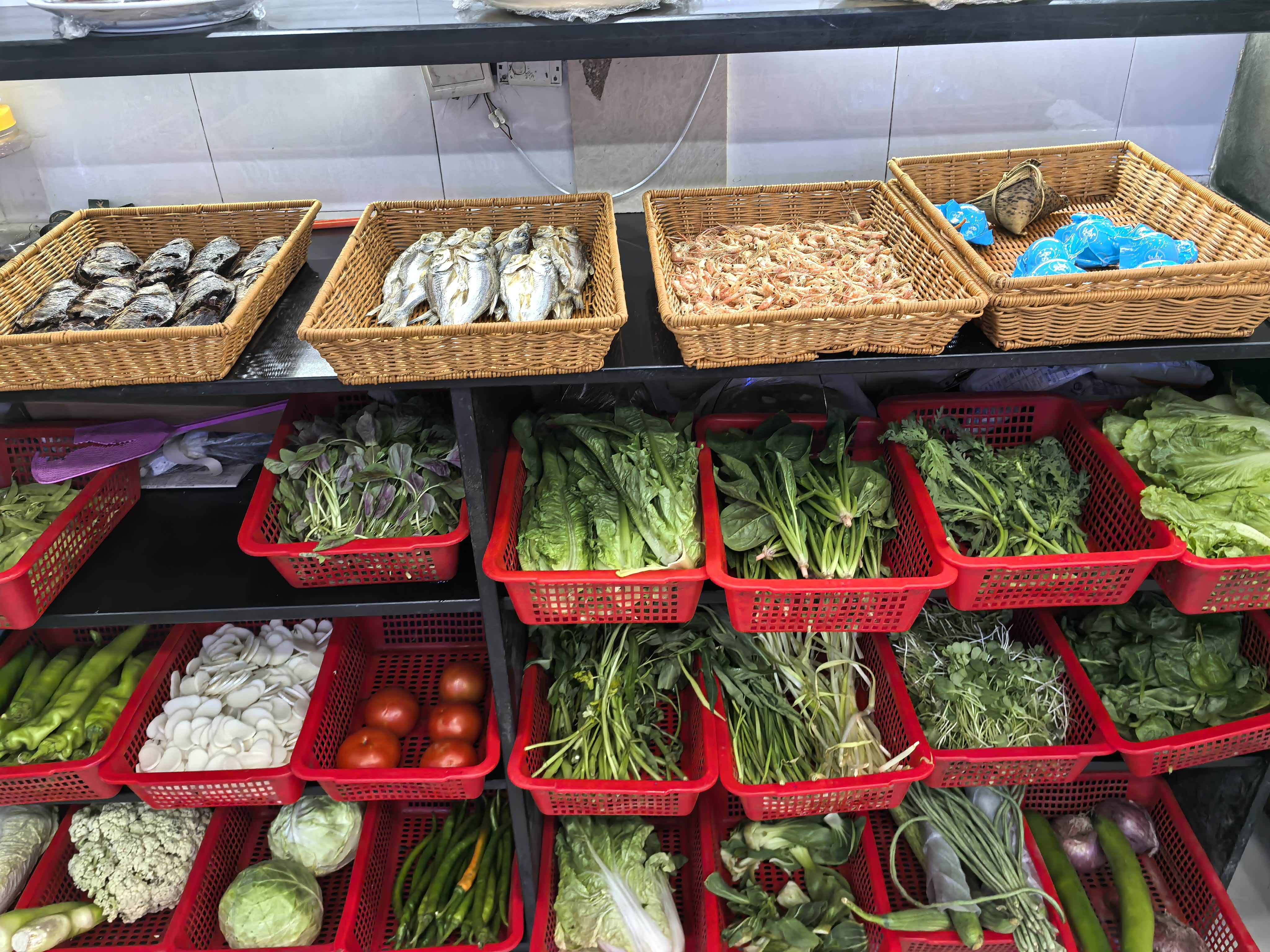 饭店卫生还算干净,菜品摆放也挺整齐。