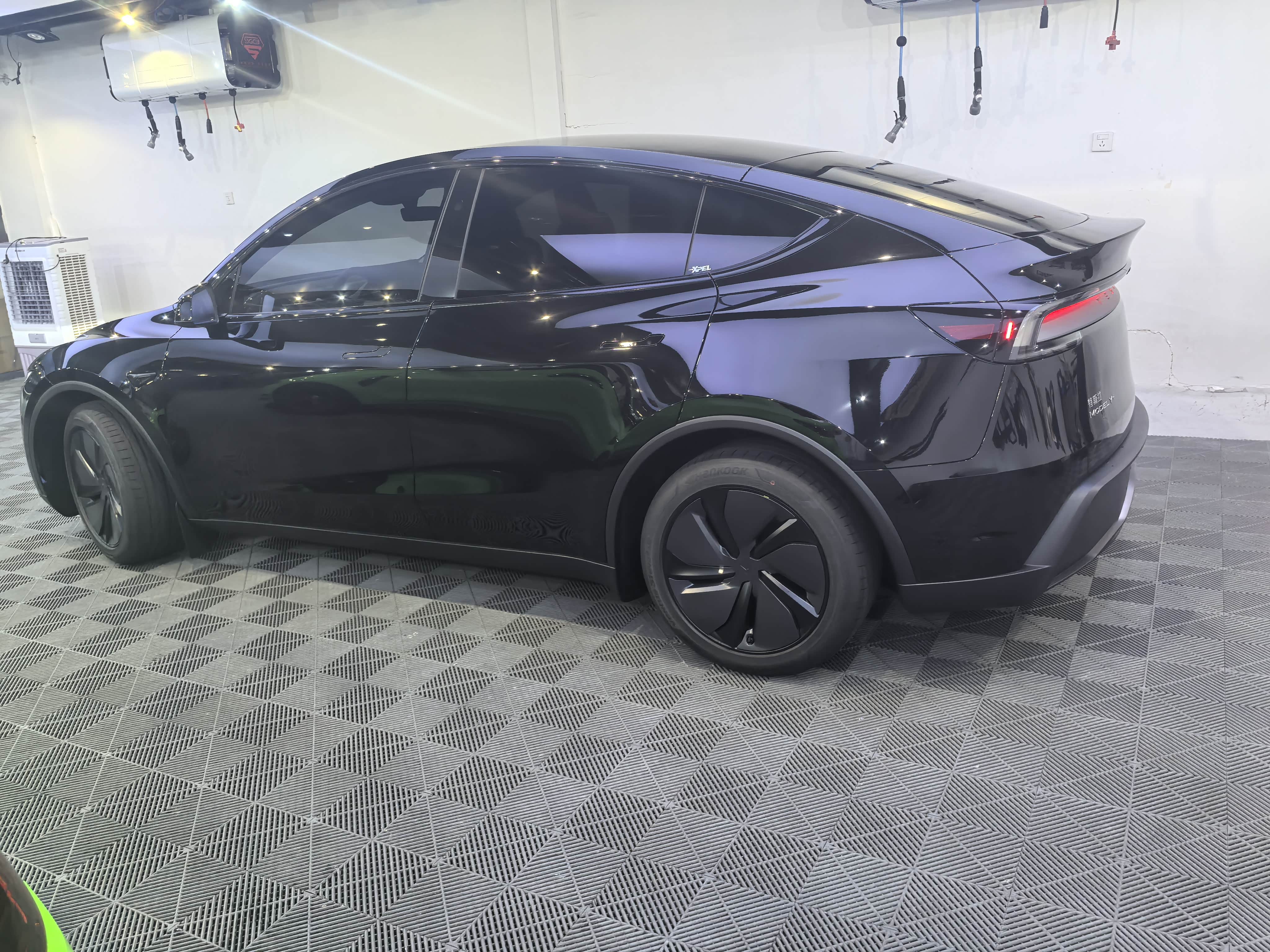 侧挡还不错,比较隐私了。旁边绿色的跑车也在贴膜,我眼中只有我的小黑,都没多看他一眼。
