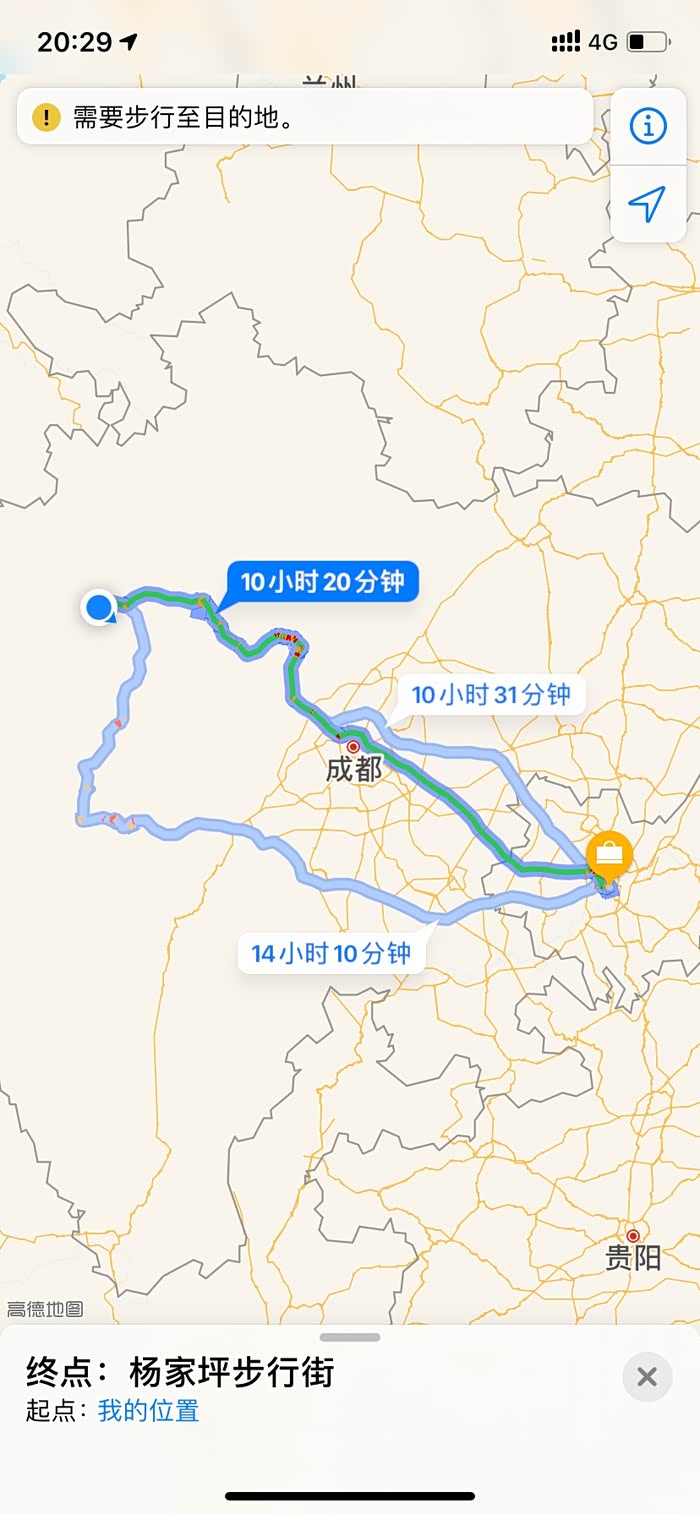目的地离出发点的导航显示,10小时20分钟,还算比较良心