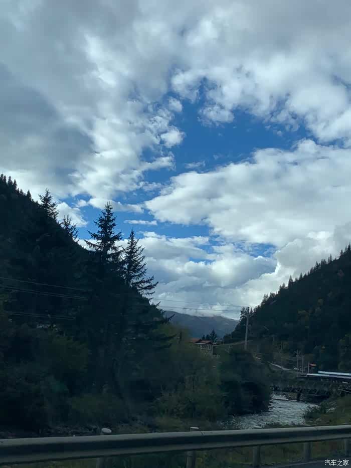 第一天的行程,重庆-观音桥镇,他们三号晚上就坐高铁到了成都,旅行团是从成都出发目的地观音桥镇,我这边从重庆出发,想着能追上他们,可真的是把旅程低估了,硬生生的从早上7点开到晚上8点才到达目的地,一路上虽然辛苦,但也享受。真的很喜欢川西的感觉,喜欢在重庆不常见到的蓝天和白云。