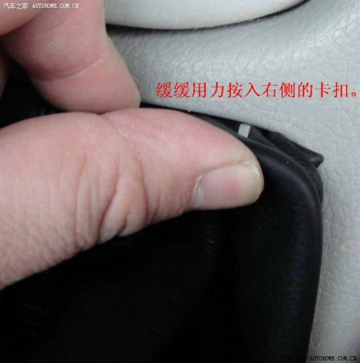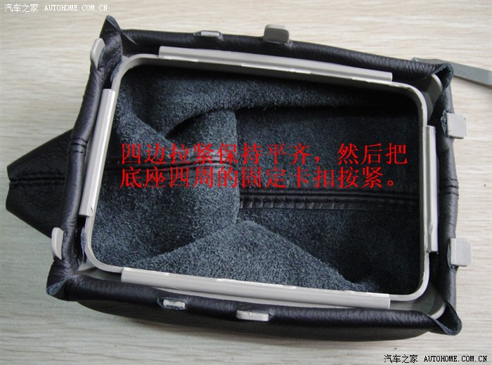 2、防尘套底座全部松开以后,下面的主要任务就是把档把头拔下来,在网上看了下,有的朋友说要旋转90度,有的朋友说直接使劲拔,今天就来验证下,到底哪个方法是正确的。把正副驾驶的座位都尽量退到最后,然后骑坐到正副驾驶座位之间的那个放水杯的位置。两脚蹬紧,双手握紧档把头,腰部稳住了,然后双臂用力,再用力,再用力,直到拔出来为止。