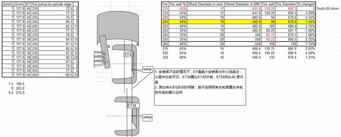 2. ET值,不能突出车身,摩擦翼子板,或者内侧磨减震筒。