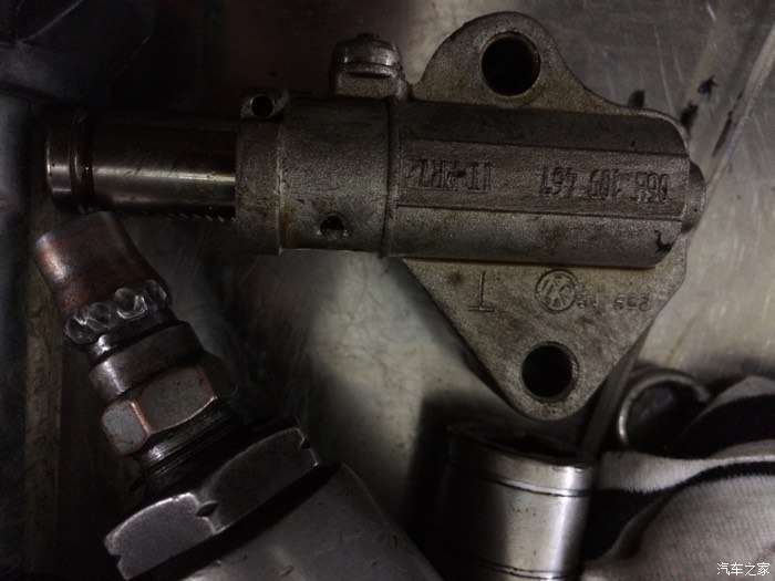 最近听到很多关于凸轮轴链条张紧器锁块碎的,导致活塞顶气门,发动机发生故障,维修费都是用户承担导。 12年以前的涨紧器,零件编号是06H,存在设计缺陷。2012年以后的涨紧器改进了,零件编号是06K开头的,后面有图片为证。此乃途观EA888发动机隐患之一,强迫症发作,故换之。时规链式正时装置上一定会有涨紧器的,作用是控制时规链的跳动幅度。整个更换过程3小时,顺带把发动机底部长期漏油的地方更换了密封圈,全部费用1300。比起四儿子的不可思议收费,你们懂的。其余图片为年前更换的球头和下摆臂,六万公里老化,影响驾驶质感。不废话了,上图: