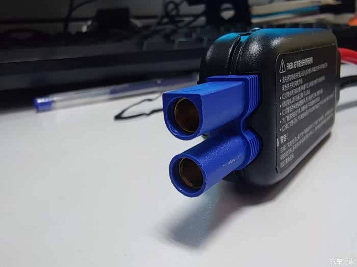 对应的电瓶夹接头是蓝色的,和接口一样一个D形一个O形,确保不会插反了!