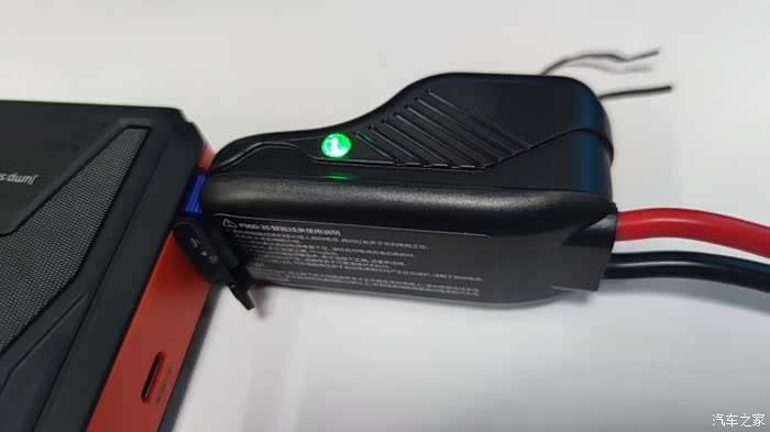 1、先将电瓶夹蓝色接头插入主机,电瓶夹上的指示灯会红绿交替闪烁。