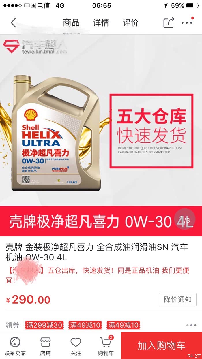 价格难以置信,市面上金壳 0W30 SL/CF 不多,属于新品。天猫700多,价格太可怕。目前购买数0,我来当个小白鼠。不过极度怀疑不是正品。
