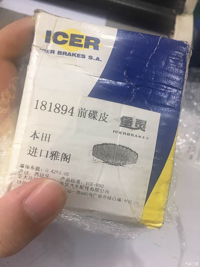 检查刹车,发现前皮只剩几毫米了,本来想买国产毅丰蓝皮的,可他们没开发我的车型