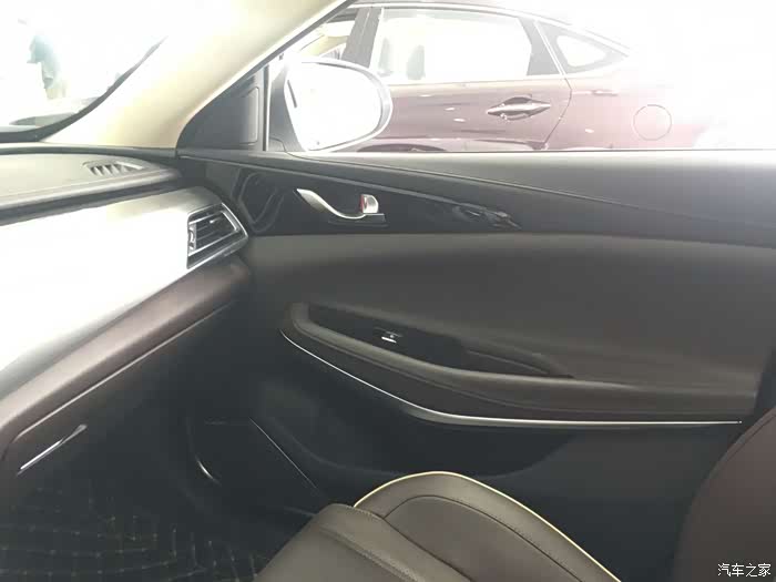 副驾驶位置,开门把手是金属的,质感和光泽都没得挑