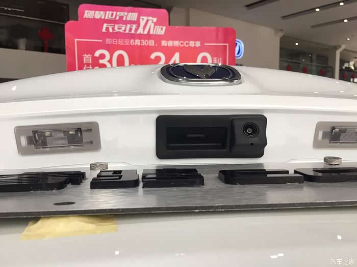 车尾有自带的摄像头,比那种后撞上去的好看协调多了