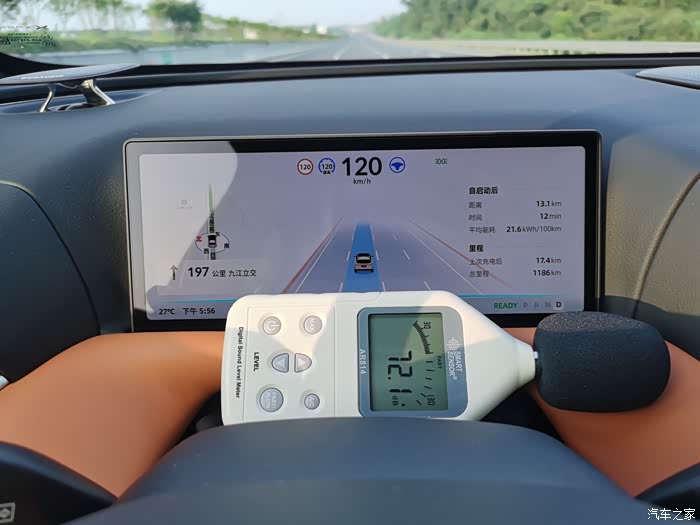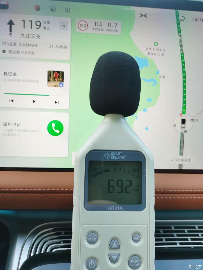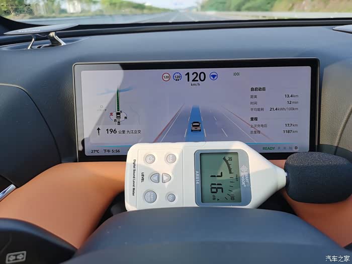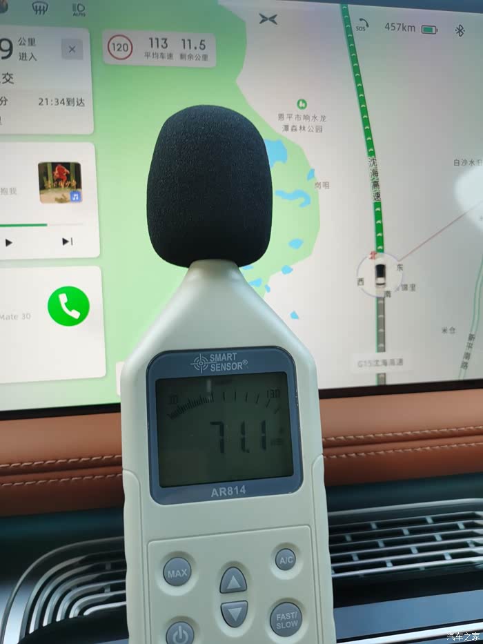 再看看以前这台奔驰V260高速上120时速的噪音。同一个噪音检测仪器。