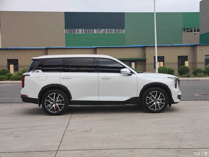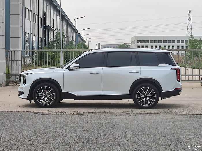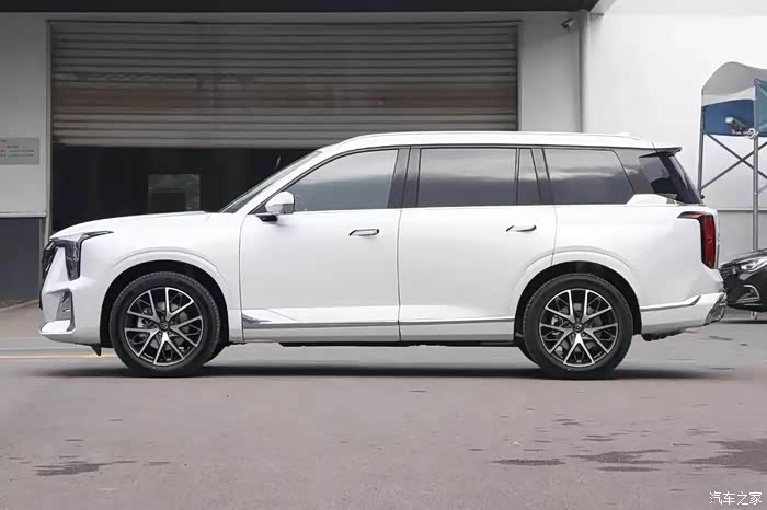 再来看一下侧面,我之所以选择白色车漆主要是因为gs8的悬浮车顶隐私玻璃,和白色车身的色差,黑白搭配,显得很有层次。还有就是展威翼外观车型的轮眉和侧裙采用的是SUV中比较常见的黑塑料材质,而龙鳞翼外观车型采用的是车身同色的轮眉和侧裙。我觉得采用车身同色并不意味之定位要比黑塑料要高。比如奔驰宝马q7揽胜很多都是黑塑料,甚至劳斯莱斯库里南,一看保险杠下边缘和侧裙也是黑塑料。而采用同色设计的一般就是霸道陆巡途乐包括我原来的哈弗h9这种偏商务的硬派越野,或者unik这种走运动路线的SUV车型。二代gs8这两种设计无非就是两个风格取向,一个偏商务豪华,一个偏运动家用。