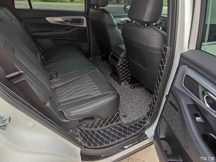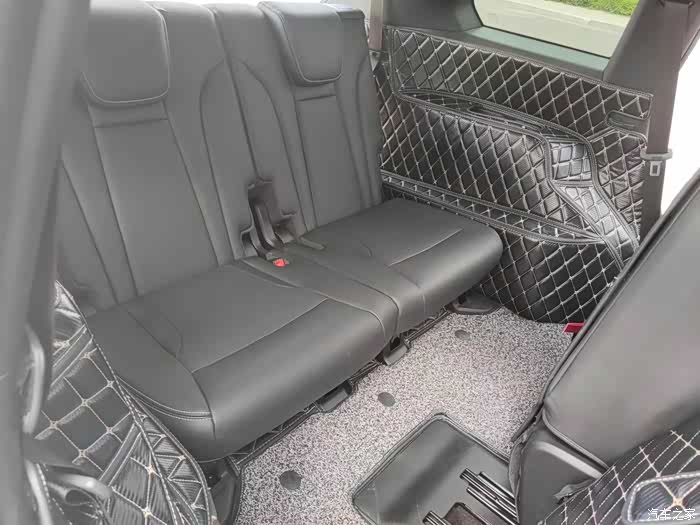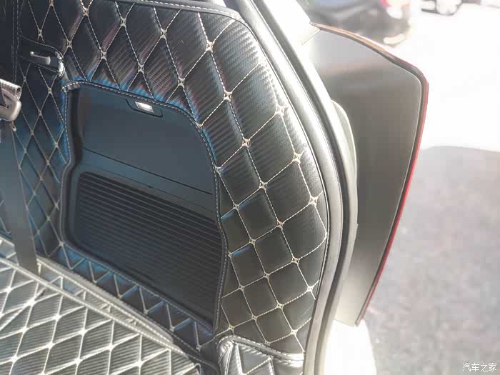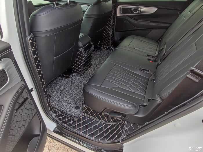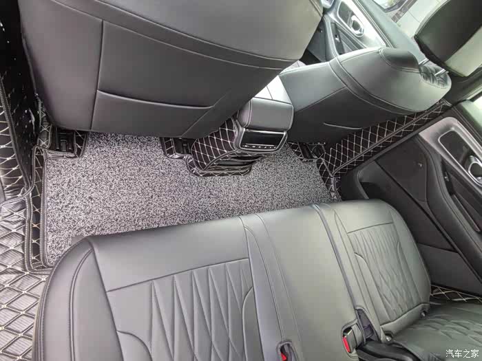 再来看看后排,从地板到脚踏都有覆盖,不过说实话防踢垫确实有点辣眼睛了,感觉有些乱,照片也是显得没有实际上相,可能也是和我选择的黑色米线有关,对比比较强烈,如果是选黑色黑线可能会好些,我也在考虑是不是撤掉防踢垫,有考虑加装的车友喜欢或不喜欢权当做个参考吧。