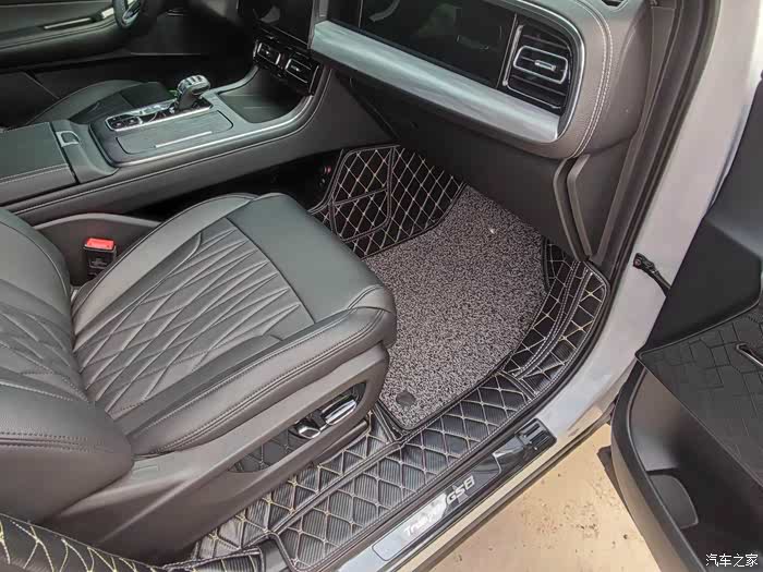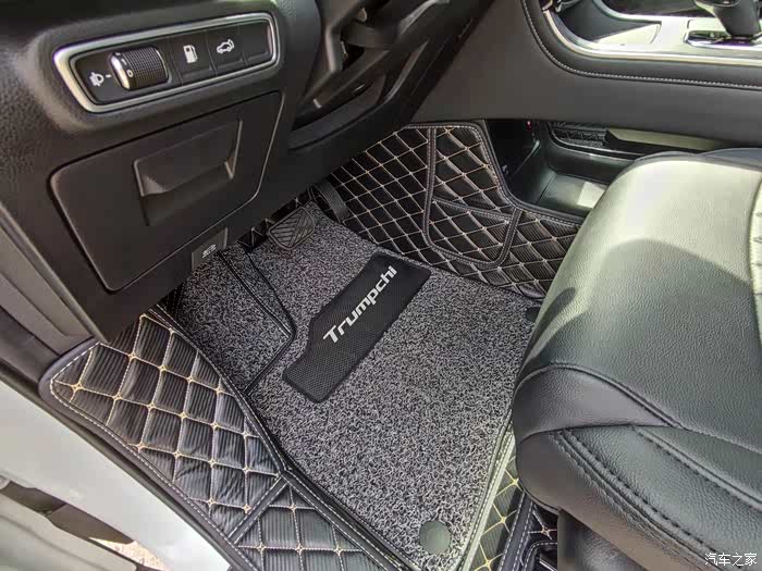 再看脚垫,也是购买于天猫的一家叫车大姐车品专营店的专为gs8开发汽车用品的改装店铺,说实话脚垫着实不便宜,不过东西确实不错,相比以往用的别家的确实要好一些,材料很厚实,面料质感也不错,颜色也很光鲜,还有仿碳纤维纹理。版型也很精准贴合,包裹的面积很大很全面。驾驶位丝圈部分覆盖的也很到位,涵盖了休息踏板的正面和侧面,而且厚度脚感也很好。