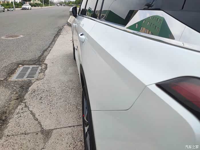 还有这两种风格也是各有优缺点。车身同色显得沉稳大气,但有些缺乏灵动。黑塑料的看起来大方干练,但觉得不够厚重,黑色车还好,尤其是白色车身,和下面侧裙对比明显,显得车身重心高有些飘,车身有些发扁,尤其是前门前下方的大面积黑塑料饰板,我实在不怎么喜欢这种设计。我也在评估将来是否加装侧踏板,以便调整降低一下车侧面的视觉重心,再有就是遮挡一下底盘部位的参差不齐。最好需要边缘是金属浅色的电踏,或者好看的固定踏板也可以。