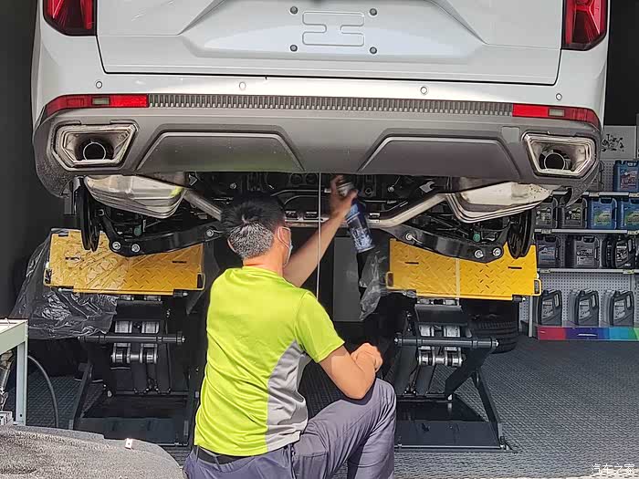 好多车友购买gs8时四s都赠送了底盘装甲,我本地传祺店铺只有一家,垄断市场,谈不下来什么优惠,反正即使赠送多半也是糊弄,既不拆护板轮胎,也不包裹防护,升起来简单喷三四瓶就收工了。