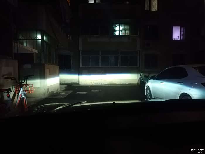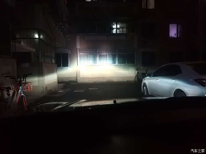 临时安到车上,灯罩简单扣上,但是固定螺丝必须拧紧。激动人心的时刻到来了,在小区里停好位置,近光打开,哇塞,真的感觉很不错。