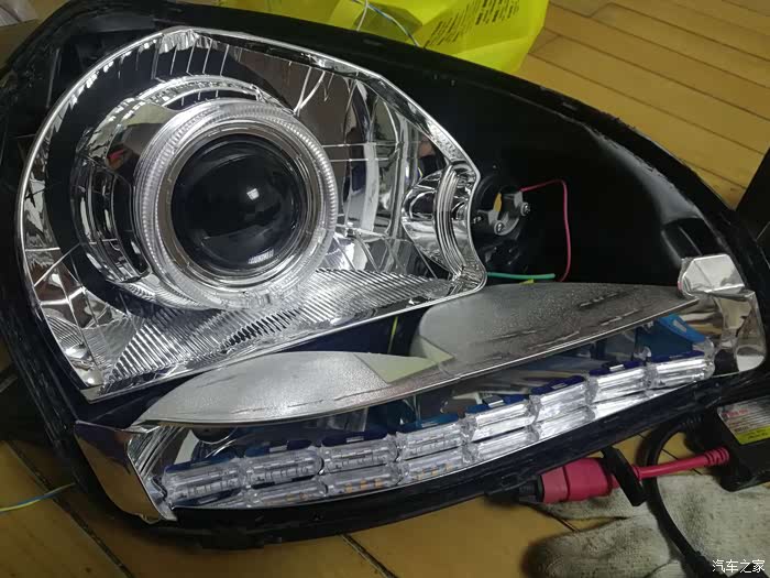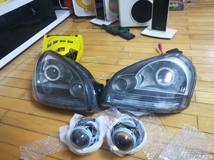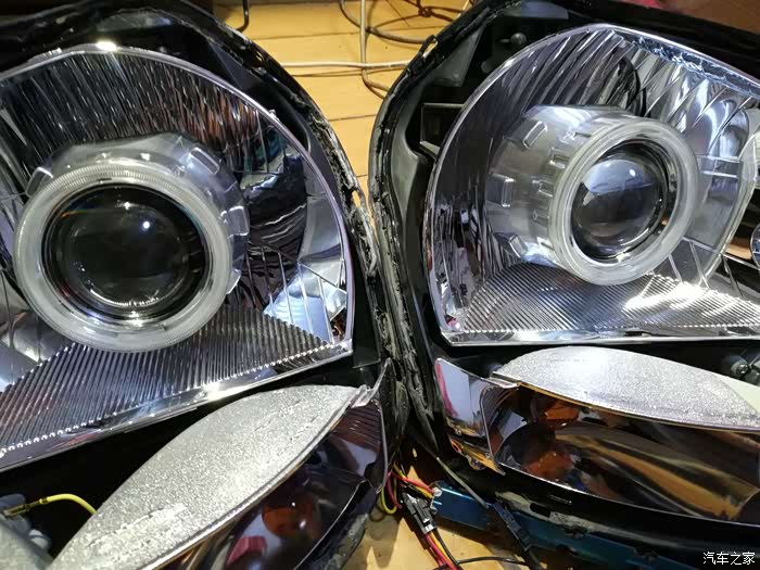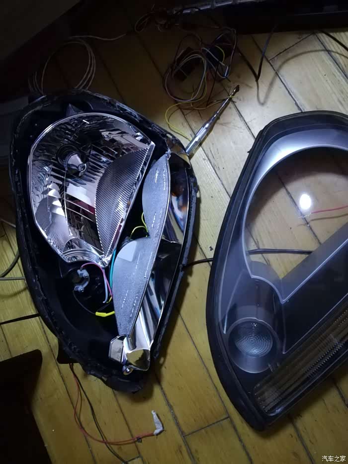 透镜到货。又把车灯拆下来,还好灯罩没有封闭。这么摆在一起,像一对眼珠子,一对大鼻孔。