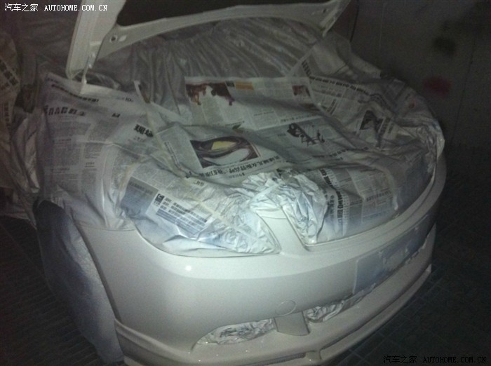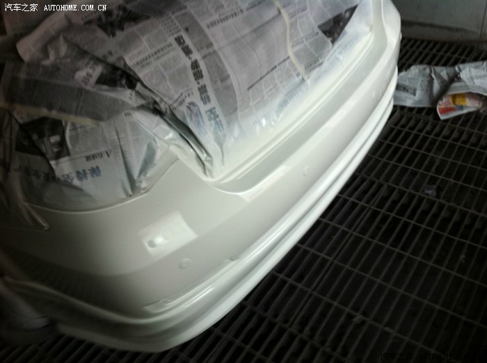 我要求包围装上去需要整体效果,和保险杠一体,所以只有连保险杠一起喷漆,这样才能够吻合保险杠的间隙,效果是杠杠滴。↑