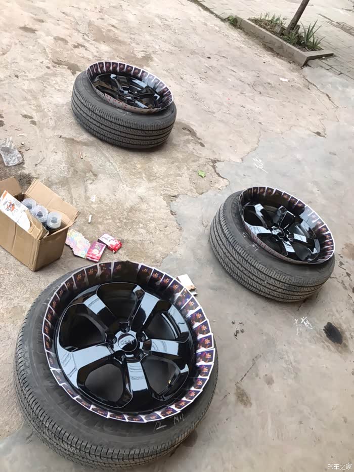 轮毂贴撕掉了,终于下决心,准备喷黑!