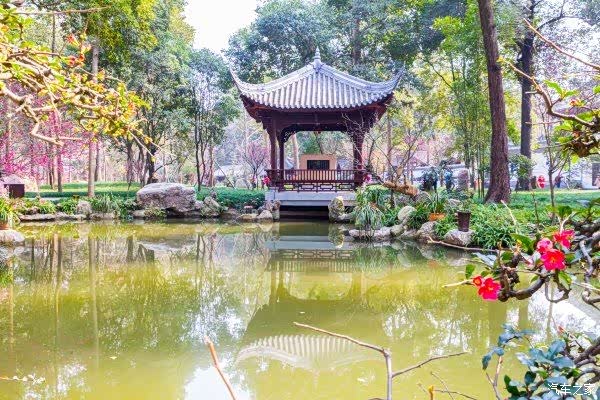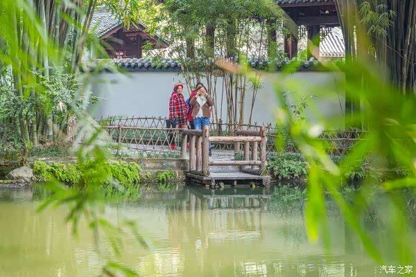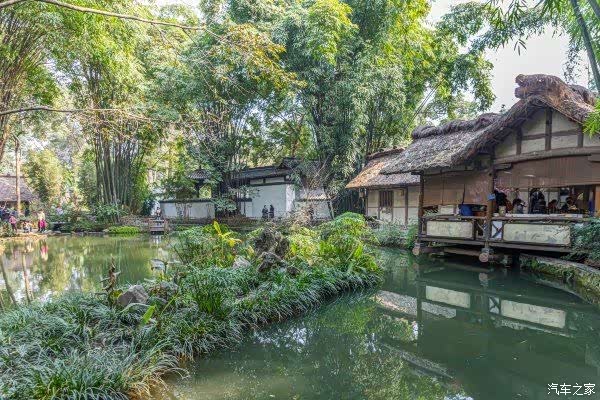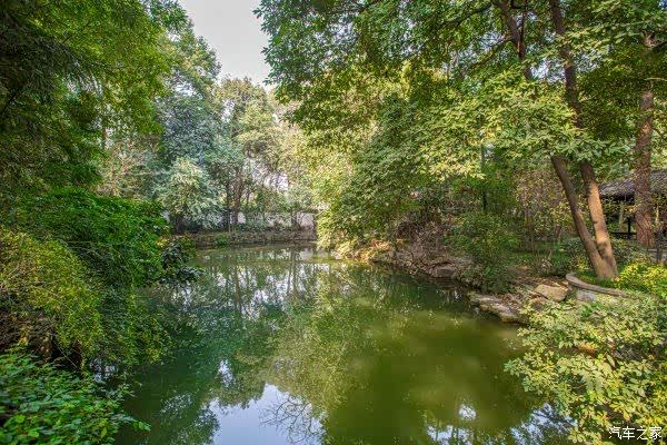整个杜甫草堂水景呈散点布局,水路迂回曲折,动静结合,水光波影,相映成趣