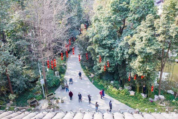 上万盆姹紫嫣红的鲜花、近千株清秀隽永的红梅、数百盆浑厚质朴的梅花古桩头,在草堂厚重的历史文化氛围与清幽雅致的古建园林的衬托下,营造出春意盎然的景象。
