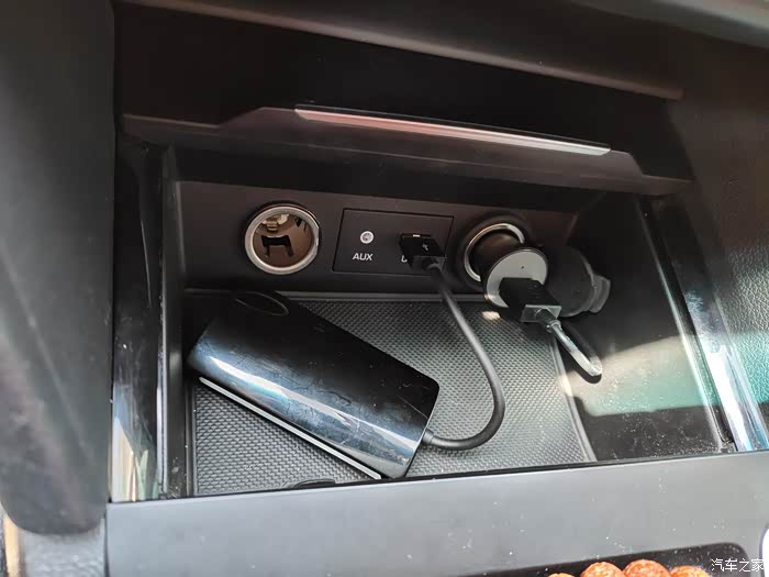 打开盖板,露出usb跟点烟器,这个位置?我感觉一个小灯泡在我头顶亮了一下,主意来了!