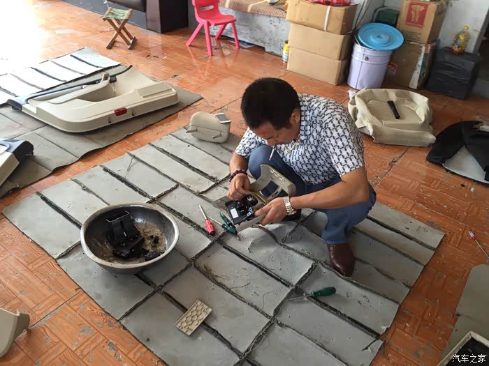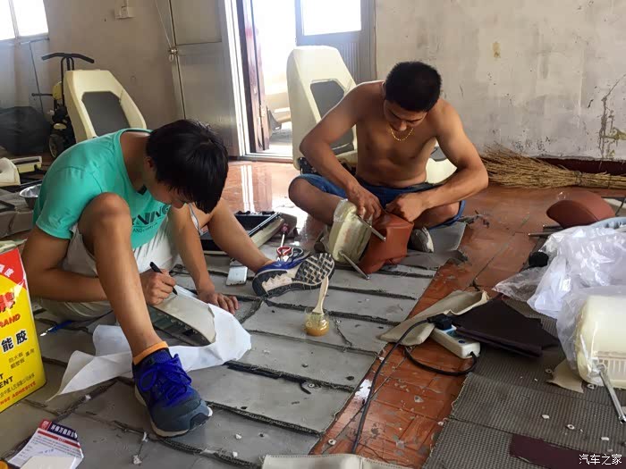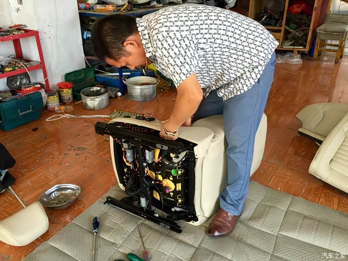 开始真皮座椅的改造,征求了父母和媳妇的意见,换了个棕色的。不得不说,南方的朋友做活确实很细,每个细节都按着原车的样子去做,不管是小妹还是小哥,技术都很信得过。
