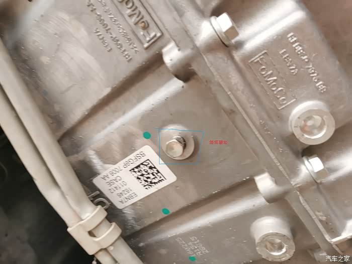 方框内是变速箱的放油螺丝,需要拧开它,将原来的油放掉