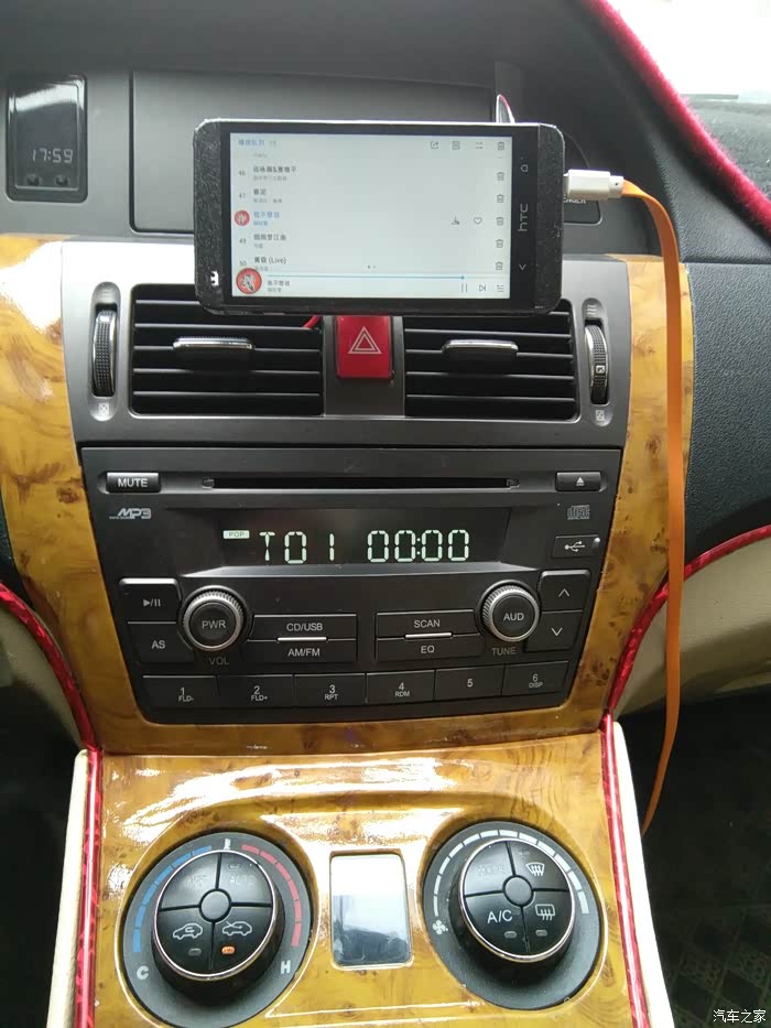 中控近景,其实照片没有实物漂亮,很多人座车上都不相信改装的,感觉很高档,原来装备上个平板电脑的,后来想想怕被人砸玻璃,虽然不值钱,但别人不一定这样认为,感觉这个手机,也很可能有被砸玻璃的风险,汗~~~