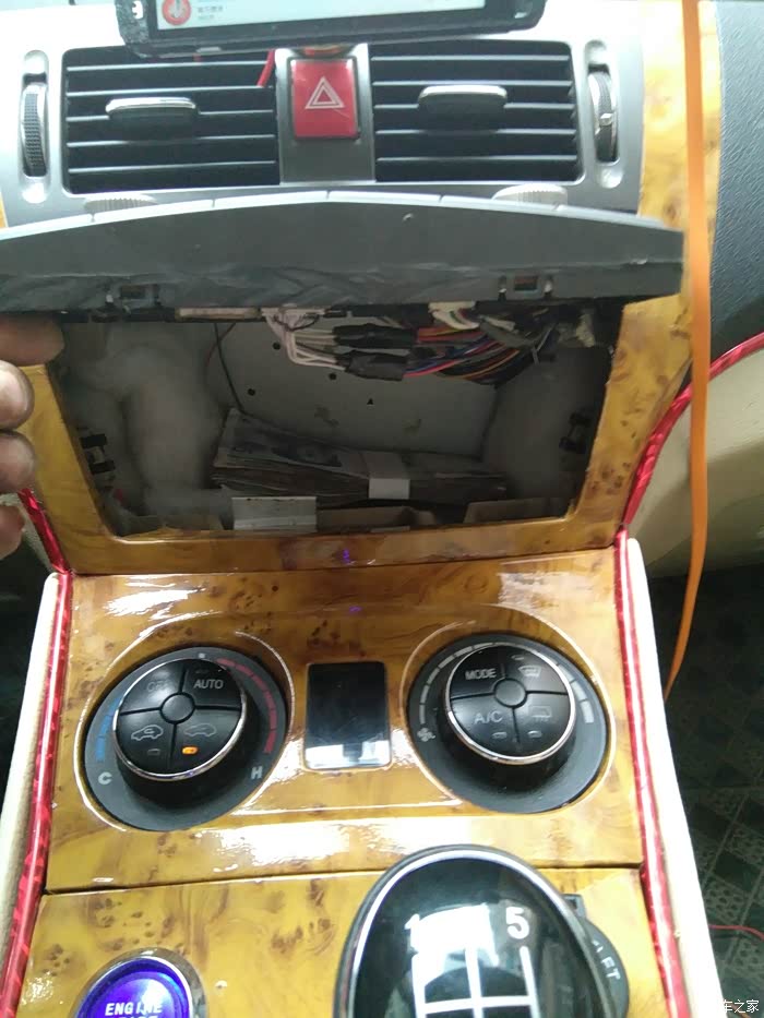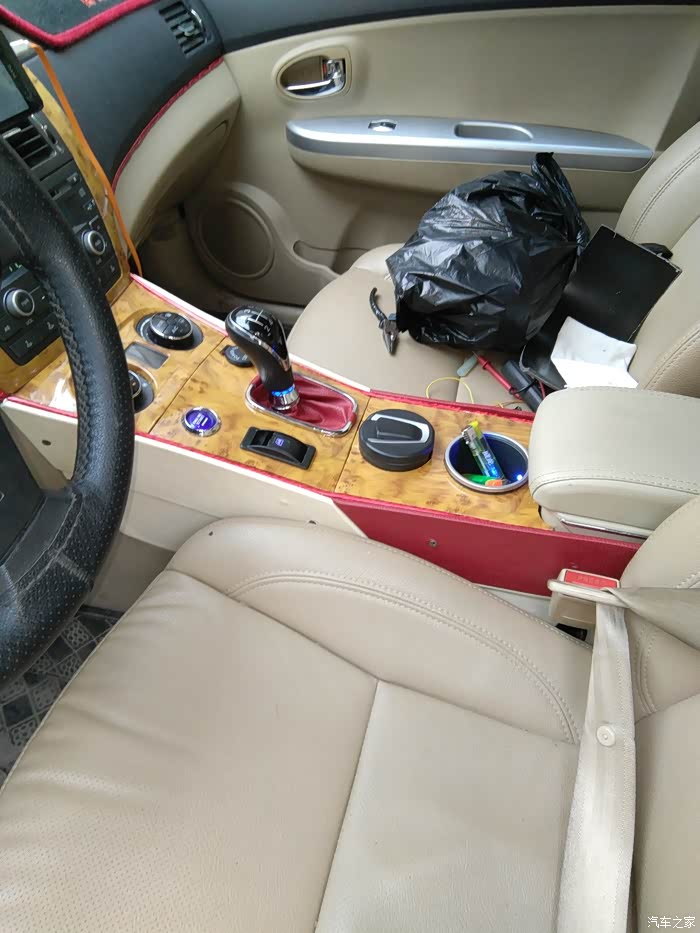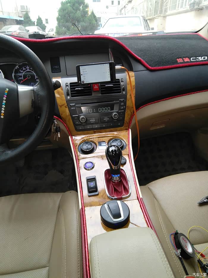 改的中控,因为C30前边空间小,没法放东西,中央过道放个毛巾都挡手刹,同时也一直喜欢中间有一排大的横向中控台,就自己动手改装