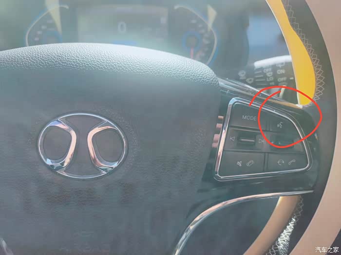 用方向盘上边的语音控制功能,或者说小e小e都可以唤醒语音控制功能,这个功能可以控制空调等平时驾车时常用的功能。