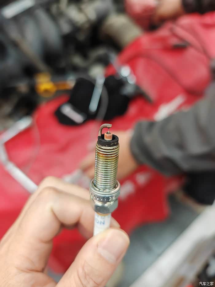 师傅拆出来的火花塞如图,说要换了,但是想起有些视频说本田车要换回原厂的针对针?查询NGK目录匹配车型,里面有针对针应该是对应原厂,还有NGK铱合金X火花塞LKAR7BIX-11S也适配。