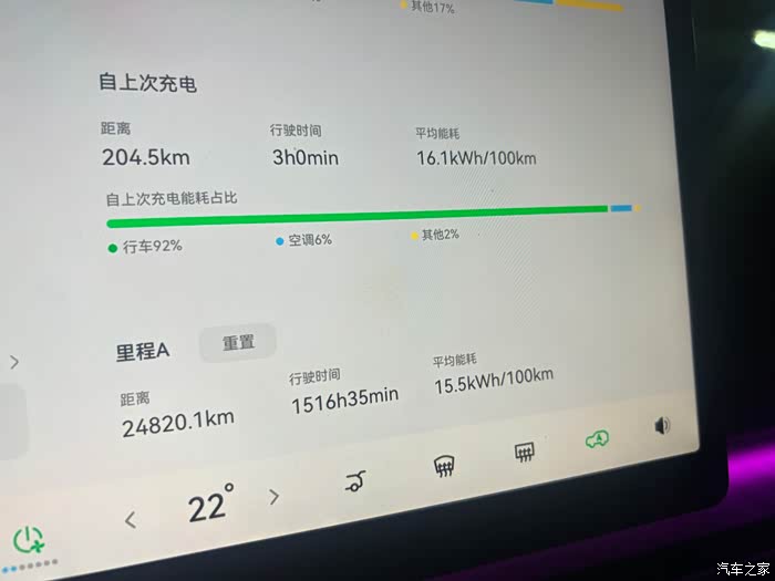 这个结果让我挺满意的!实际行驶里程与表显消耗续航的比例接近 1:1.05 (200km / 210km ≈ 0.95),对于一辆使用一年多的电动车,在高速工况下能有这样的续航达成率,说明电池衰减控制得不错,能耗管理也依然高效。更让我高兴的是,查看能耗详情时发现,空调的能耗占比并不算特别突出,没有成为续航的“大户”,整体能耗表现均衡可靠。这次小测增强了我对C10长途能力的信心。
